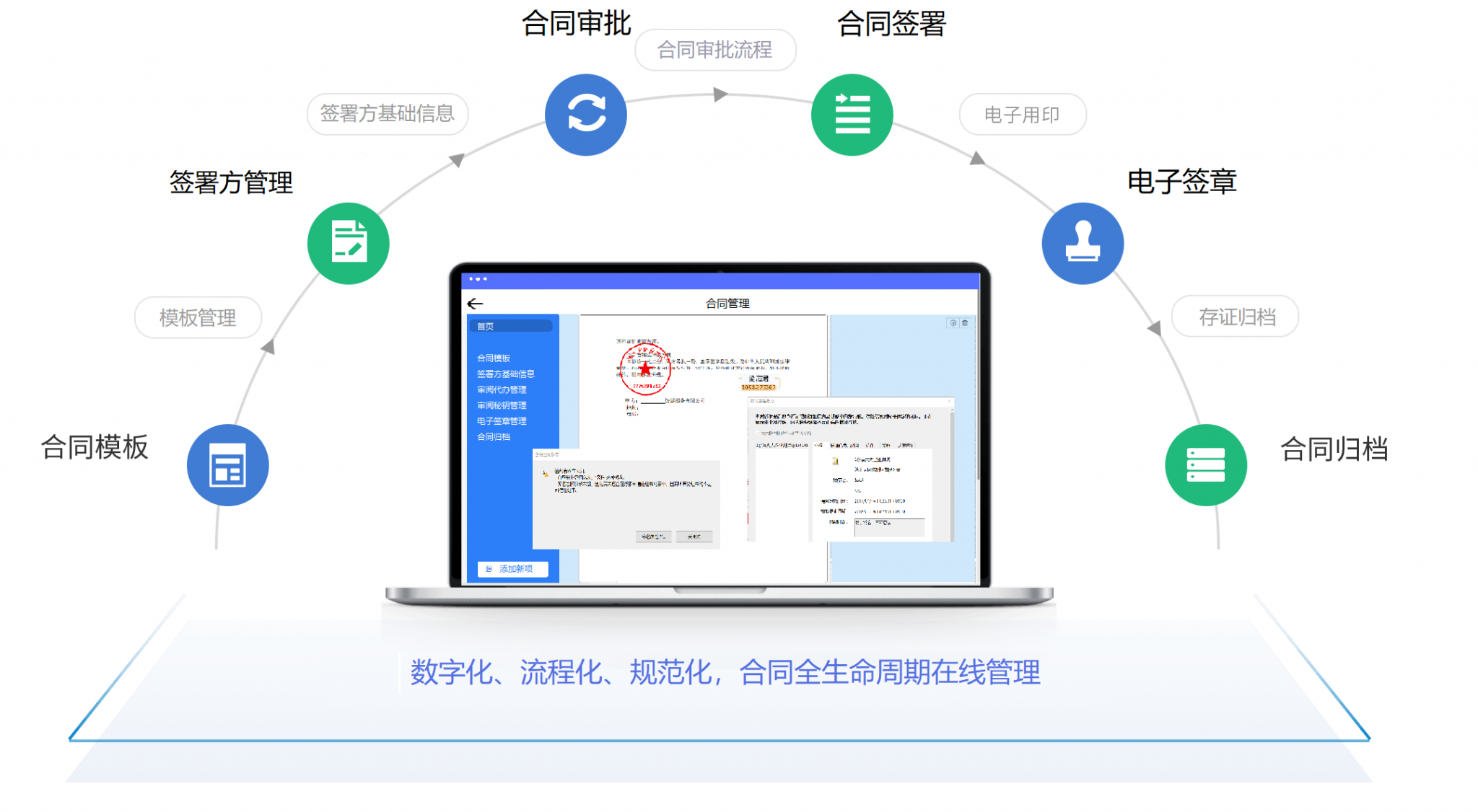 提供合同模板管理、合同审批,合同签署,合同归档一站式解决方案。节约人力成本,提高工作效率,减少法律风险