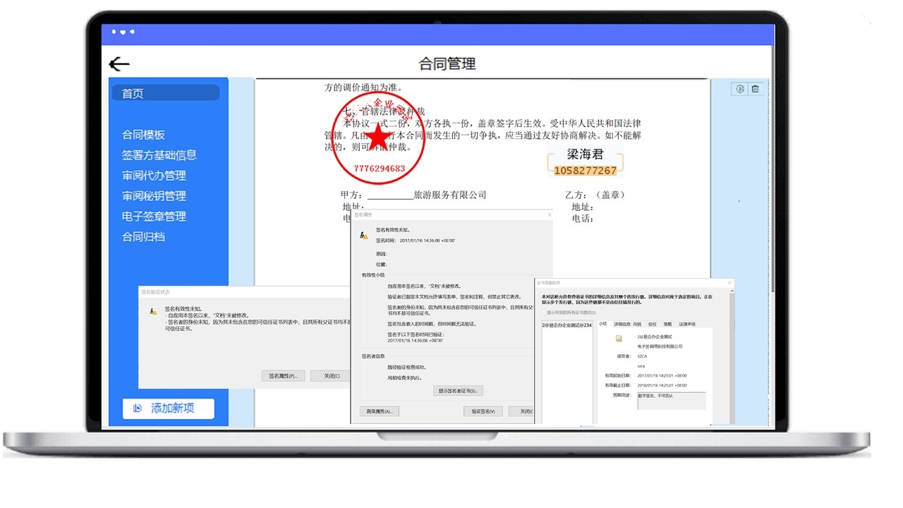 无需面对面,极速签发有效电子合同;实名认证+数字证书,确保身份真实;领先的数字签名技术,有效防篡改