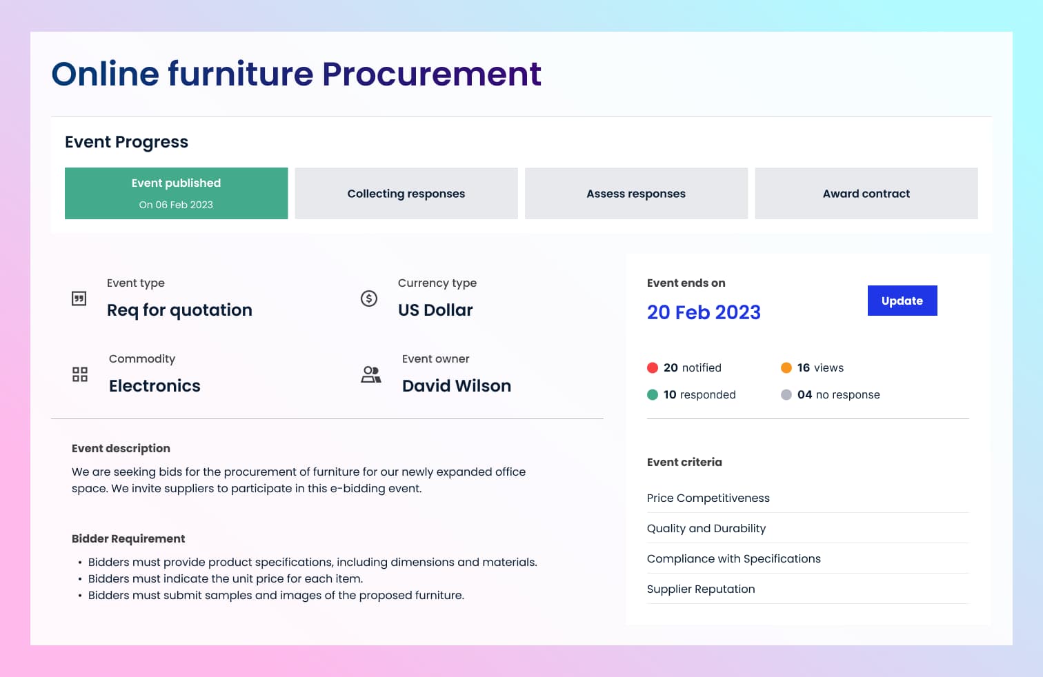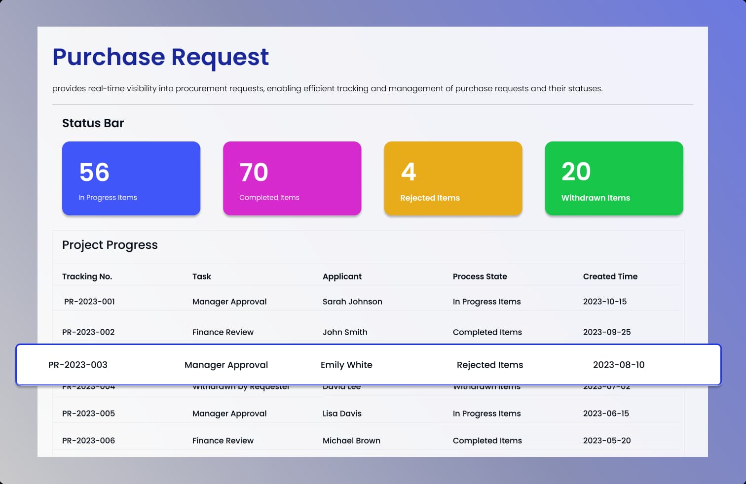 提供实时的采购进度状态查看,一目了然地掌握所有采购活动的最新情况,优化采购决策和管理。