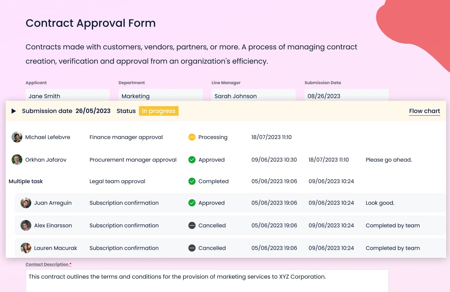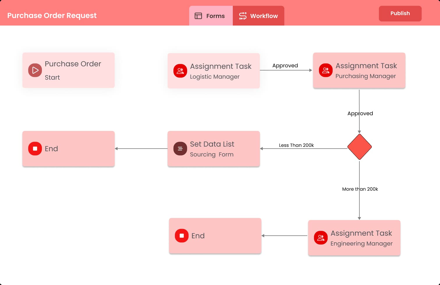 审批流程可以在无需人工干预的情况下,自动按照预先设置的组织架构的层级进行流转,提高审批效率。