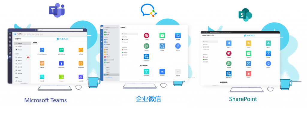 同时,作为国内的大部分员工,在移动办公方面有较高的使用需求,利用易企办的多用户认证体系,国内用户可以同时使用Office 365平台以及企业微信进行应用访问和业务处理。满足不同类型的用户和业务场景的访问需求。