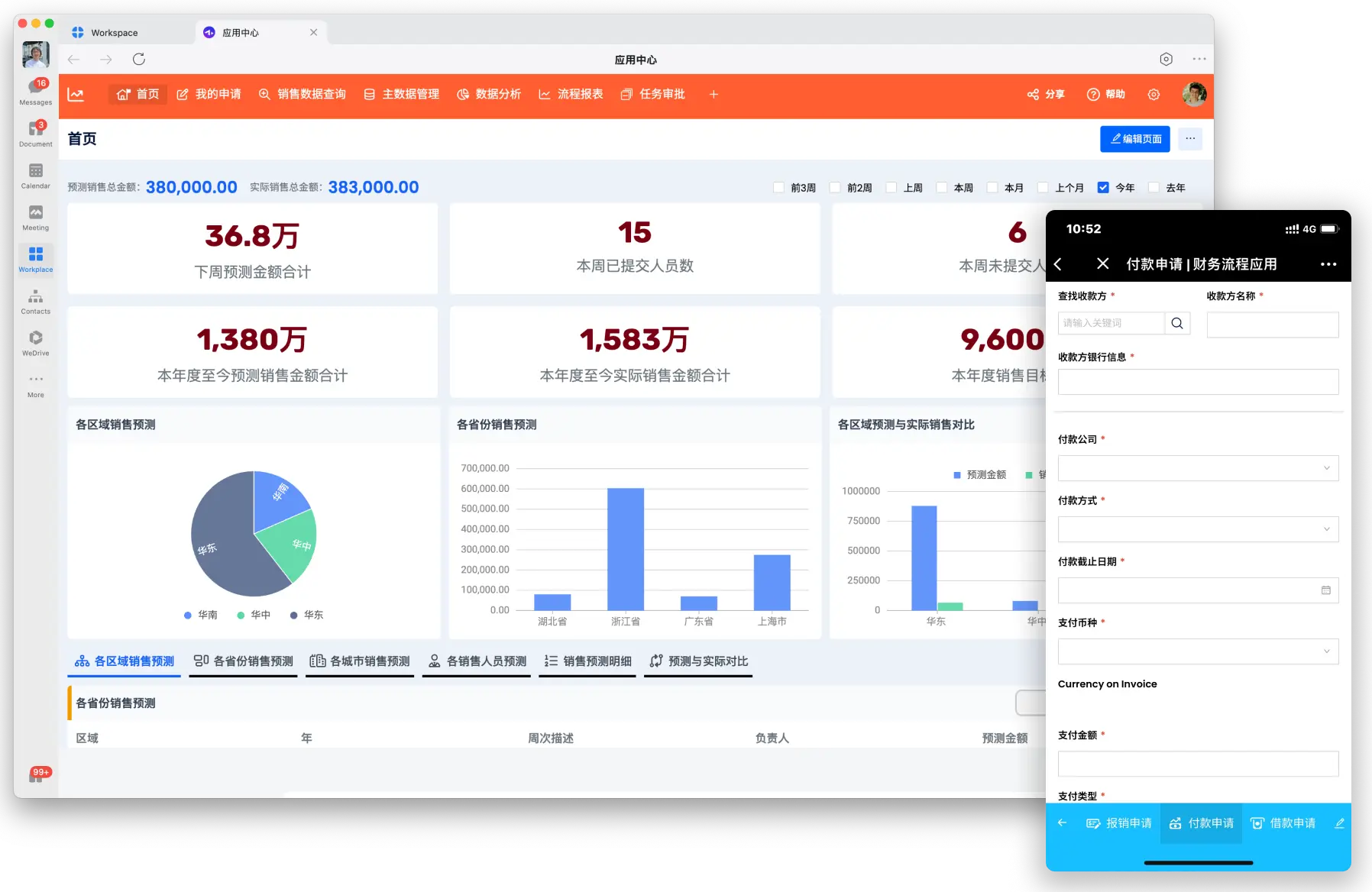 在企业微信中的易企办应用支持易企办平台的全部功能,包括但不限于表单创建、业务流程管理、任务分配、数据分析等。用户可以在企业微信中直接构建和管理复杂的业务应用,无需离开企业微信环境。